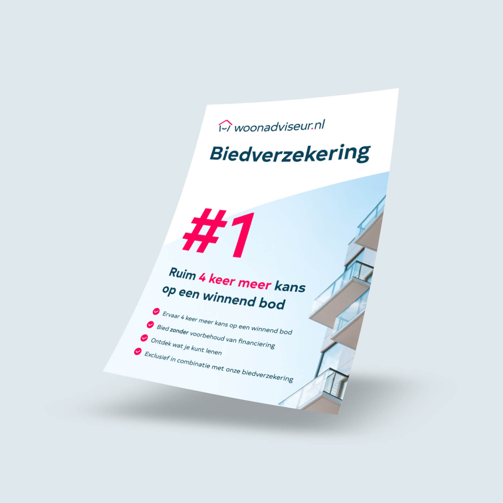 Wil je sterker bieden op een woning zonder onnodig risico? Combineer het biedadvies van Woonadviseur met een biedverzekering. Zo kun je in veel gevallen zonder financieringsvoorbehoud bieden, terwijl je toch beschermd bent als de hypotheek onverwacht niet rondkomt.